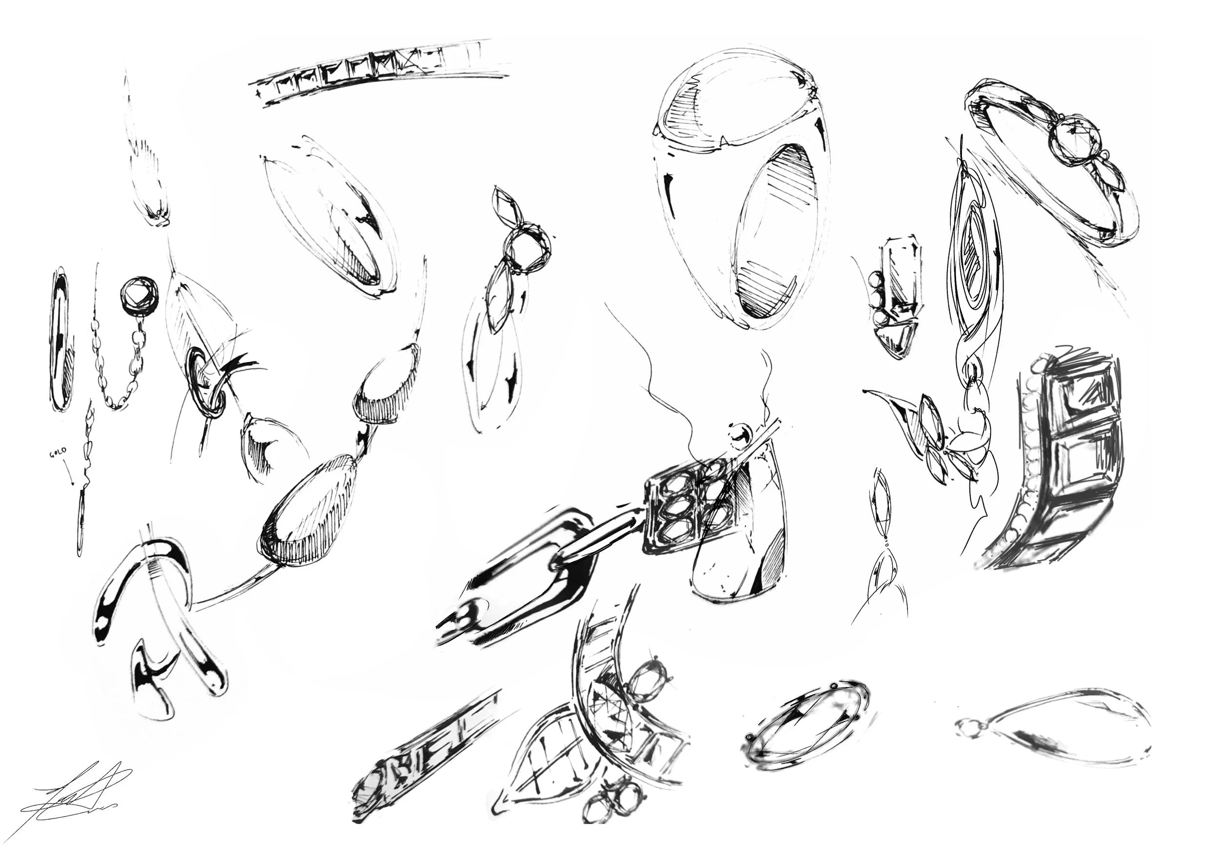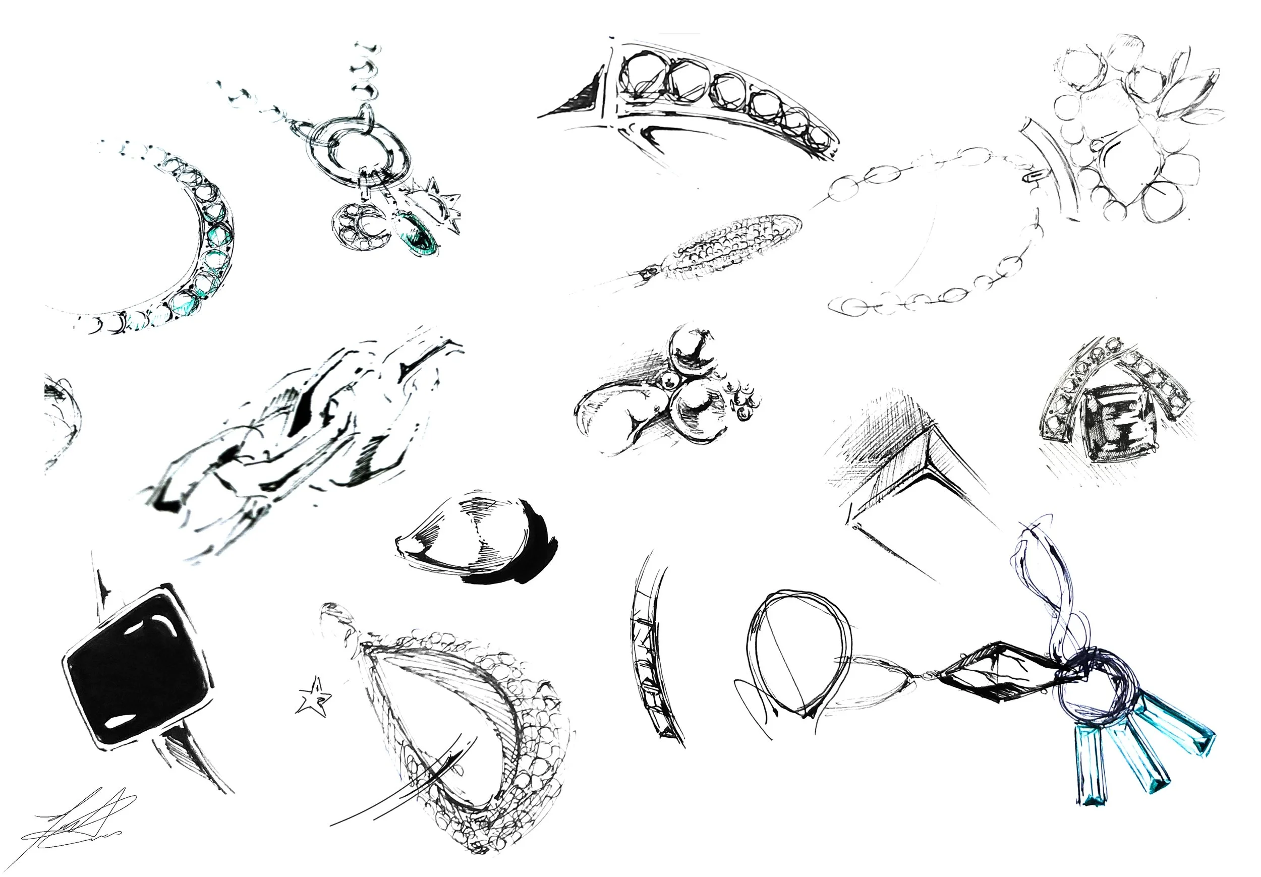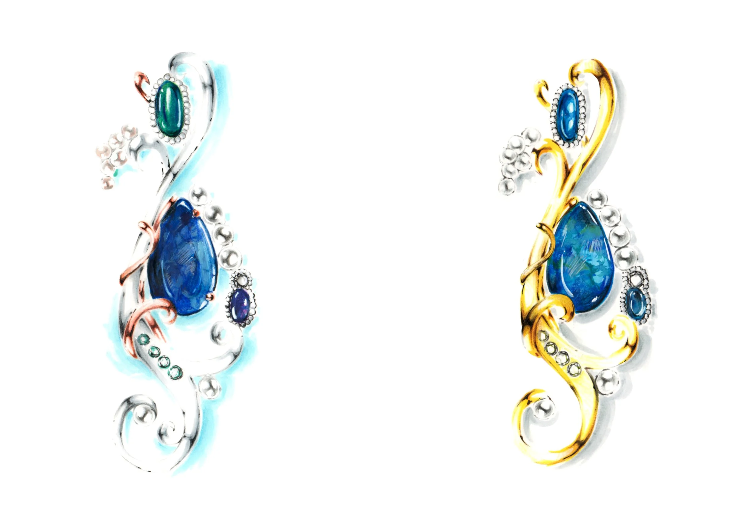 From sketches of timeless pieces to vibrant, detailed renderings of modern jewelry, each illustration demonstrates my mastery of technique, attention to detail, and an understanding of the interplay between form, light, and texture, that can be used in different ways.